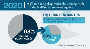 Đầu tư vào Doanh nghiệp là lựa chọn đầu tư được ưu tiên vì nó có chiến lược hoàn vốn rõ ràng và một số dự án mang lại lợi tức đầu tư đáng kể. Năm 2020, trong số tất cả các chấp thuận cho chương trình IIP, Diện Đầu tư Doanh nghiệp chiếm 63% và Bartra Wealth Advisors có gần 70% tổng số chấp thuận cho diện Đầu tư Doanh nghiệp, giữ vai trò dẫn đầu trong ngành.