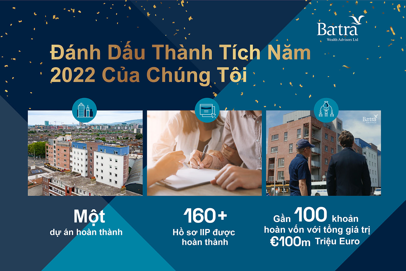 Lợi ích chính của IIP đối với nhiều nhà đầu tư là triển vọng có được quyền cư trú tại Ireland trong một khoảng thời gian ngắn. Bartra tiếp tục duy trì tỷ lệ phê duyệt 100% với 35 đơn được phê duyệt trong năm nay và thời gian phê duyệt trung bình là 8 tháng. Chúng tôi dự kiến sẽ nhận được nhiều thư chấp thuận hơn vào đầu năm 2023 và chúng tôi tin tưởng rằng thành tích tốt của chúng tôi sẽ được duy trì với nhiều khách hàng trên khắp thế giới, bao gồm cả từ Việt Nam và Hoa Kỳ. Ngoài ra, chúng tôi đã duy trì tỷ lệ hiệu suất gia hạn là 100%, giúp 78 khách hàng gia hạn thành công giấy phép cư trú lần thứ nhất và lần thứ hai.