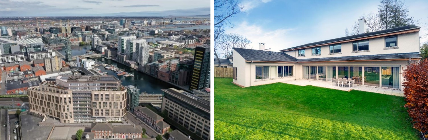 Trái: Khu phát triển thương mại The Sidings. Phải: Phát triển khu dân cư Gelsavage ở Blackrock Dublin