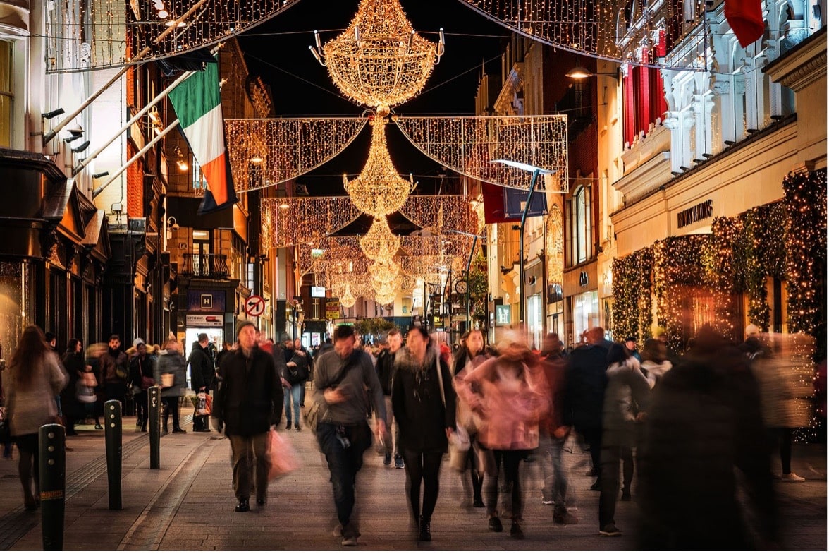 Dublin trở nên sống động với màn trình diễn rực rỡ của đèn Giáng sinh. Đi dạo qua Phố Grafton, Phố O’Connell và St. Stephen’s Green để chứng kiến sự biến đổi của thành phố thành một cảnh tượng rực rỡ với niềm vui lễ hội.