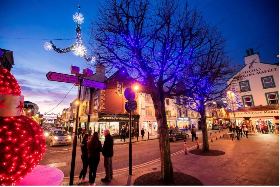 Hãy đến Killarney, nơi các màn trình diễn lễ hội không kém phần huyền diệu. Trung tâm thị trấn và Công viên Quốc gia được trang trí bằng ánh đèn, tạo nên bầu không khí cổ tích phản ánh đúng không khí của mùa lễ hội.