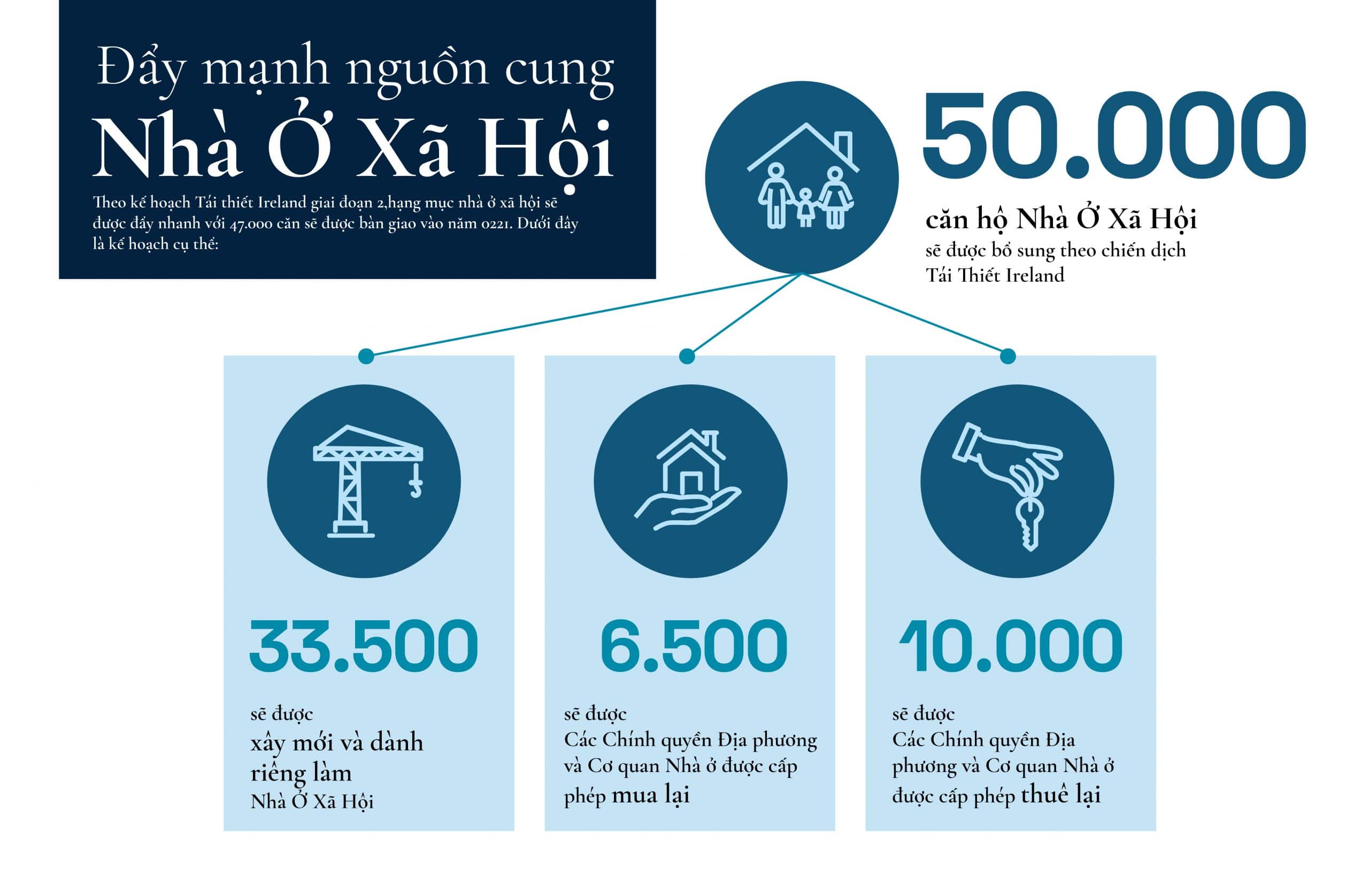 Với mong muốn đẩy nhanh tiến độ bàn giao Nhà Ở Xã Hội, Chính phủ Ireland đã cam kết hỗ trợ hơn 6 Tỷ Euro cho chiến dịch ” Tái thiết Ireland “. Một trong những mục tiêu đề ra là đến năm 2021 số lượng Nhà ở Xã Hội phải đạt 50.000 căn, trong đó xây mới 33.500 căn Nhà ở Xã Hội, mua lại 6.500 căn từ thị trường và 10.000 căn còn lại sẽ thông qua cơn ác mộng. thuận lợi cho thuê lại từ các doanh nghiệp. Nói cách khác, Chính phủ Ireland đang giới thiệu các đơn vị đầu tư Bất ngờ sản xuất thúc đẩy xây dựng phát triển thêm nhiều dự án mới và cho Chính phủ thuê lại.